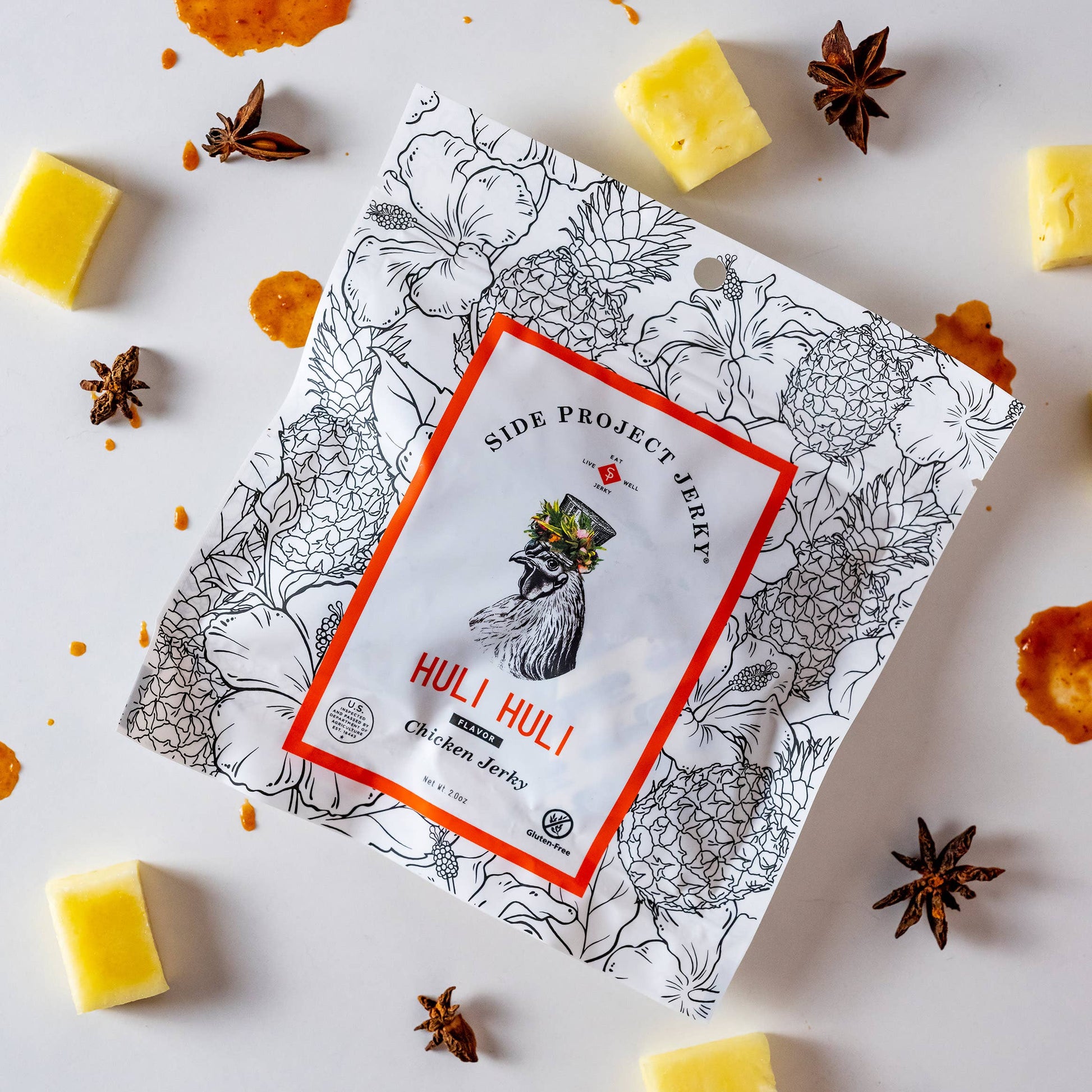 Huli Huli chicken jerky blends sweet pineapple, savory miso, and five-spice for a taste of Hawai’i.